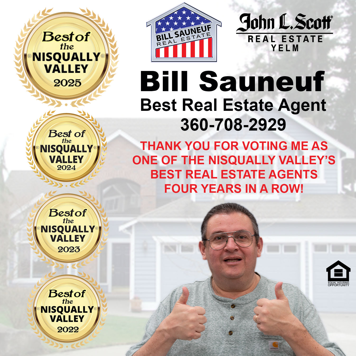 Bill Sauneuf is a seasoned Real Estate Broker with John L. Scott Real Estate in Yelm, Washington, bringing 24 years of experience and more than 200 successful home sales across Thurston and Pierce counties. Licensed since 2002, he averages 10-15 transactions per year and is known for his deep local knowledge of Yelm, Rainier, Roy, Spanaway, Tenino, Enumclaw, and surrounding communities. Bill is a 2025 Winner of the Best of Nisqually - Best Real Estate Agent, a multi-year finalist (2022-2025), and a recipient of the John L. Scott President's Award, recognizing outstanding achievement within the brokerage.
