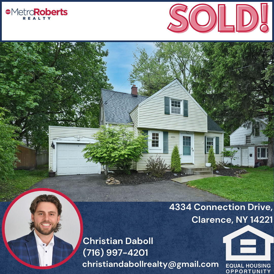 Christian Daboll is a licensed REALTOR® with WNY Metro Roberts Realty, proudly serving clients across Buffalo, Amherst, Williamsville, Clarence, Orchard Park, Hamburg, and other Western New York communities. Raised in Amherst, Christian knows the neighborhoods, schools, and lifestyle that make WNY unique -- and leverages that local expertise to guide his clients through every step of the buying and selling process. Since becoming licensed in March 2025, Christian has already helped clients close or go pending on $1.9M in sales volume across four transactions in his first five months and is ranked in the top 30% of all agents in Western New York. His goal for 2025 is to assist 6-8 families in achieving their real estate dreams. Whether working with first-time buyers, luxury homeowners, or clients navigating downsizing and move-up transitions, Christian delivers personalized strategies designed to fit each client's goals and timeline. Backed by the trusted reputation of WNY Metro Roberts Realty, Christian combines modern marketing, strong negotiation skills, and a client-first approach to ensure success on both sides of the transaction. With a growing list of five-star reviews and a deep passion for helping his hometown community, Christian is quickly becoming one of Western New York's rising real estate professionals.