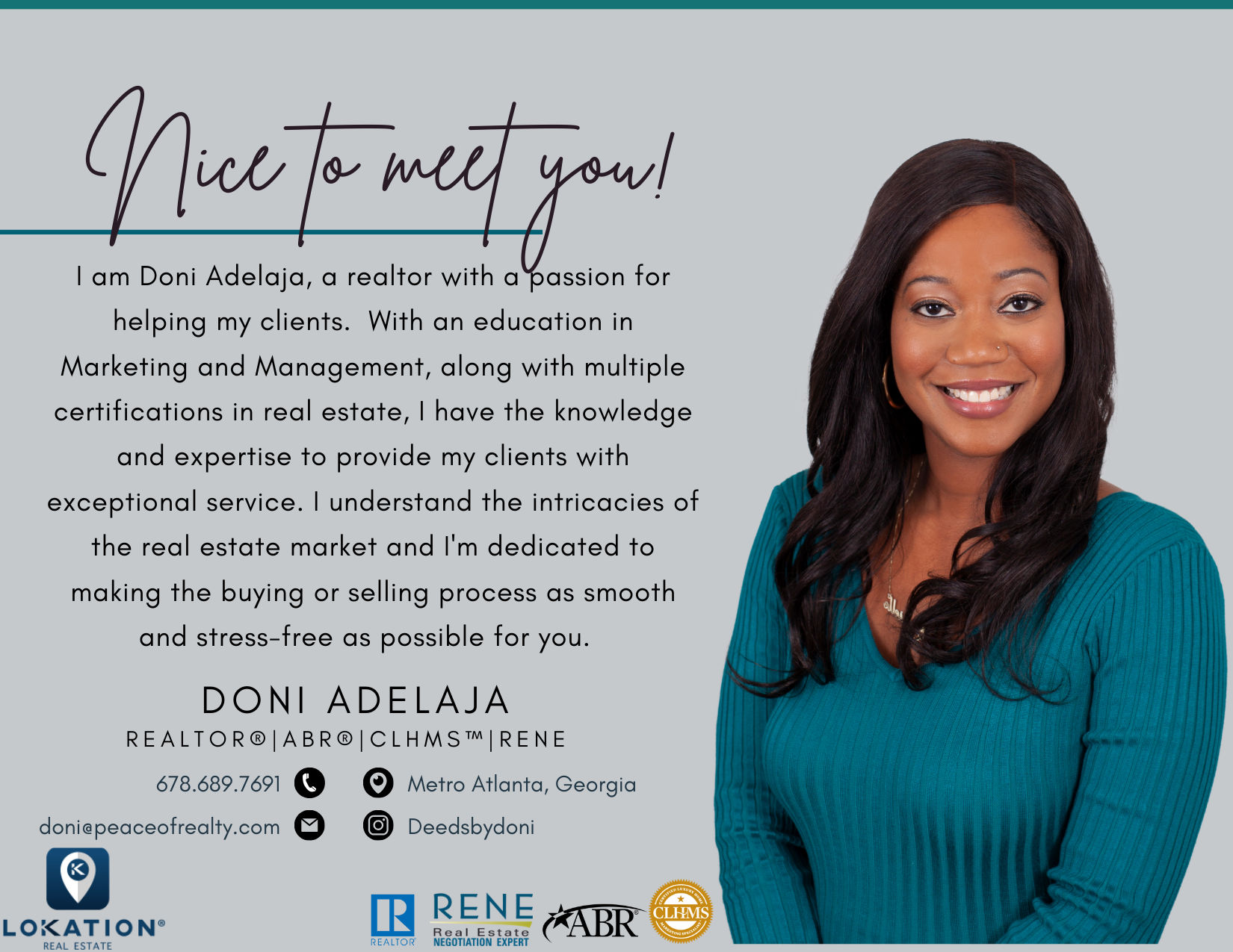 Doni Adelaja is the best! She was thorough and professional and great to work with. Doni was honest, upfront, and was able to find me a house that fit right in my price range. Doni is extremely knowledgeable and very detail about the properties she shows. I highly recommend her to everyone. thank you, Doni! Wycliffe.