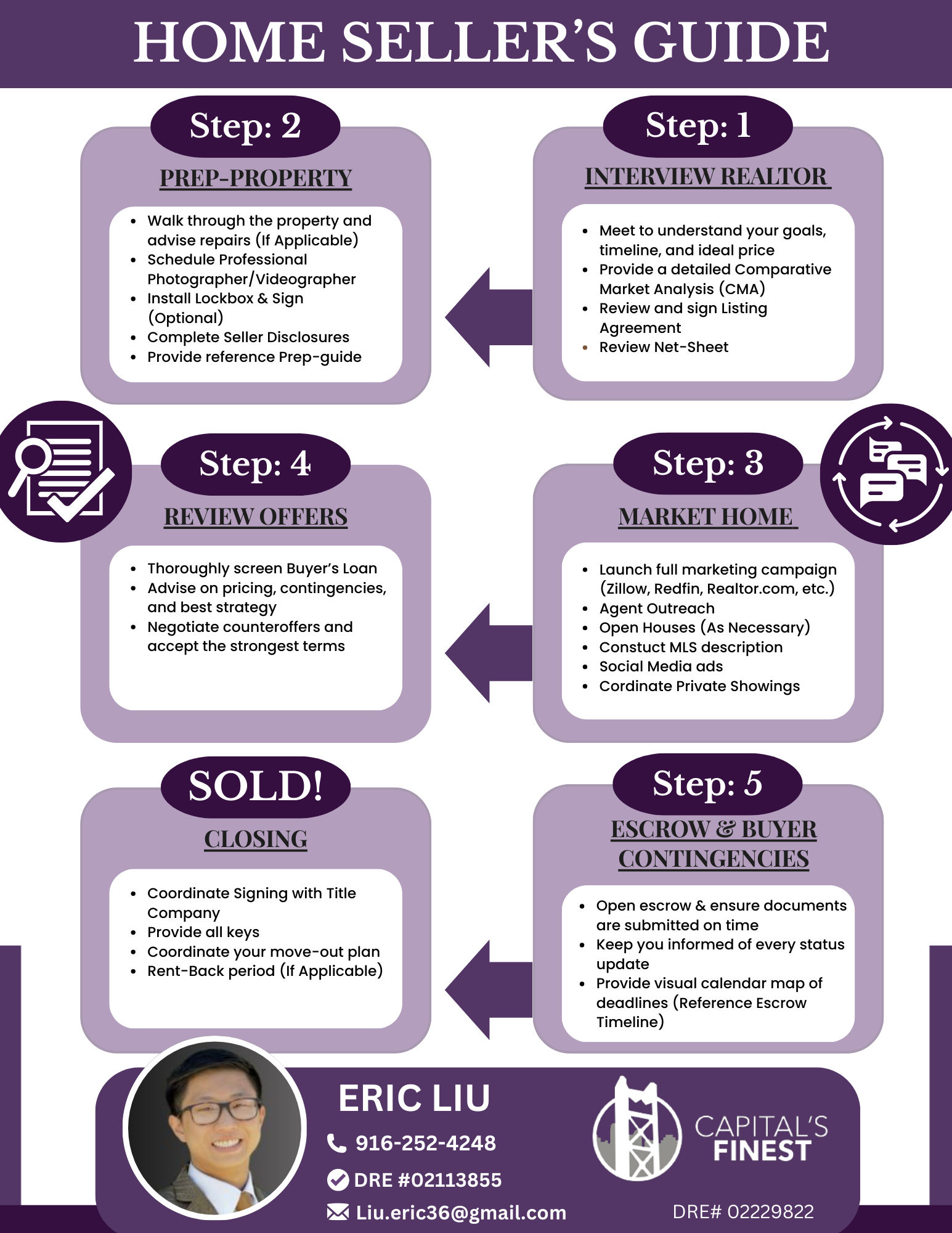 Working with Eric to sell my home was the best decision I made during this process. From start to finish, he was prompt, knowledgeable, and exceptionally patient with all my questions. Eric kept me updated on every detail, whether it was preparing my listing or negotiating offers. I appreciated how Eric took the time to explain each step and made sure I felt confident in every decision. The whole transaction went smoothly, and we were able to close without any unexpected issues. Id definitely recommend Eric to anyone needing a trustworthy, thorough real estate agent. Thanks again for making a stressful situation so much easier!