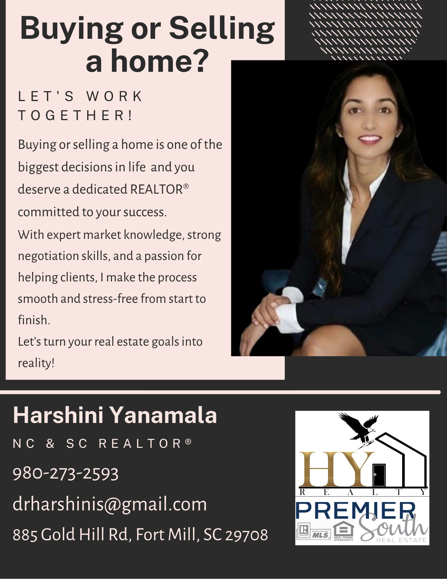 Meet Harshini Yanamala, a dedicated and experienced Realtor who has been helping clients buy and sell properties. Harshini is passionate about real estate and takes great pride in providing exceptional service to all of their clients. Harshini, started their real estate career with a commitment to being an advocate for their clients, ensuring that they receive the best possible service and representation throughout the buying or selling process. They take the time to understand their clients' needs and goals and work tirelessly to help them achieve them. If you're looking for a Realtor who is passionate about real estate and committed to providing exceptional service to their clients, look no further than Harshini. Whether you're buying or selling a property, Harshini has the knowledge, expertise, and dedication to help you achieve your goals.