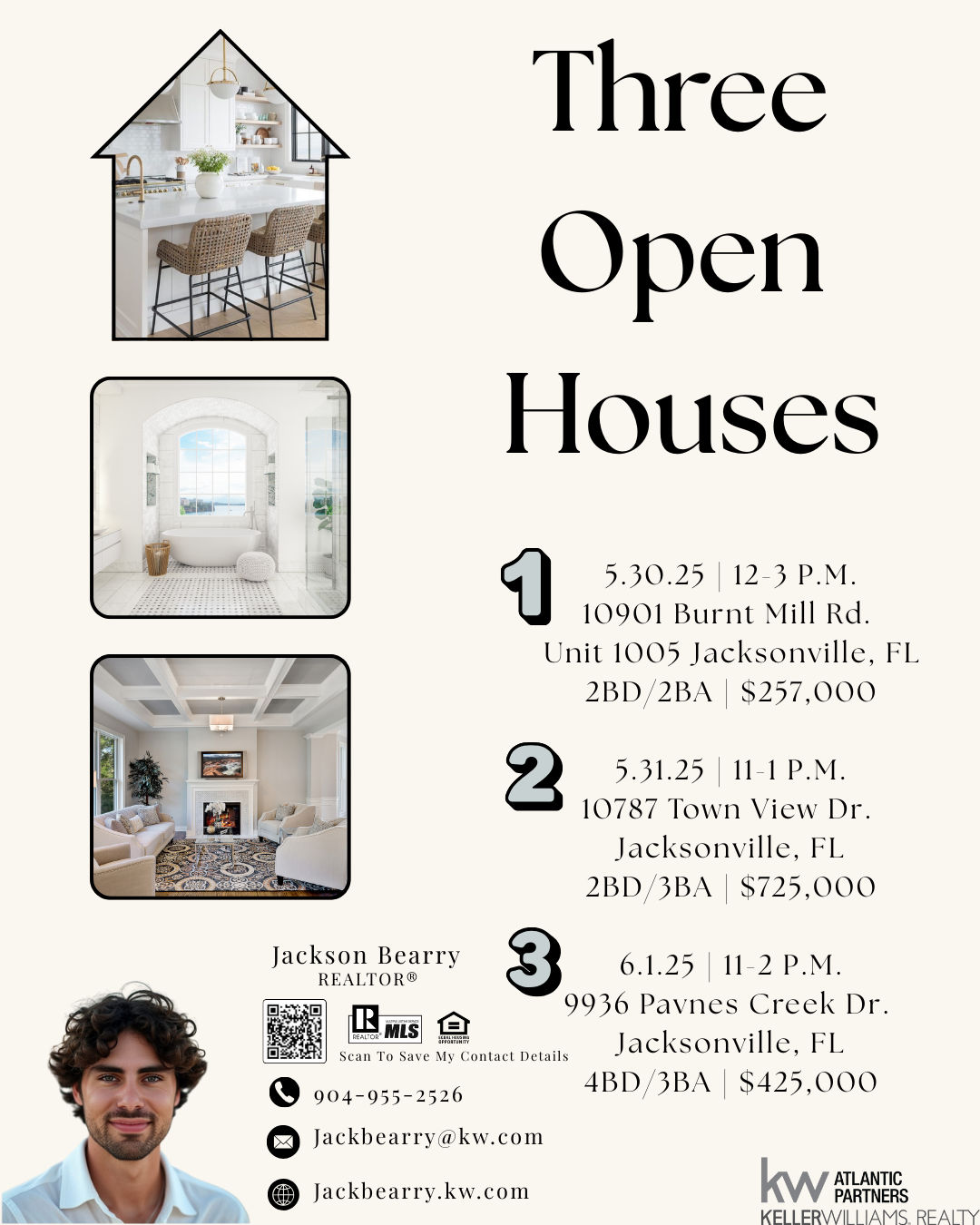 Hi, I'm Jackson Bearry--a Northeast Florida native and licensed REALTOR® with Keller Williams Realty Atlantic Partners. I help buyers and sellers across Jacksonville, Jacksonville Beach, Neptune Beach, Ponte Vedra, and the surrounding coastal communities navigate real estate with confidence, strategy, and a bit of hustle. I'm proud to hold a 5-star review status on FastExpert and was recently honored by BestAgents.us as a Top New Aspiring Agent. My approach is rooted in transparency, responsiveness, and local expertise--whether I'm guiding a first-time buyer, advising a seasoned investor, or working a referral from a trusted colleague. Before becoming a licensed agent, I worked in home renovation and real estate marketing--experience that gives me a sharp eye for value, design, and long-term investment potential. I bring that same attention to detail into every transaction, ensuring my clients feel supported from day one to the closing table (and beyond). If you're looking for an agent who's proactive, easy to work with, and deeply committed to the client experience--I'm your guy. And if you're a fellow agent looking to refer a customer to the Jacksonville area, I'll treat them like family and keep you updated every step of the way. Let's connect--whether it's for your next move or your next referral.