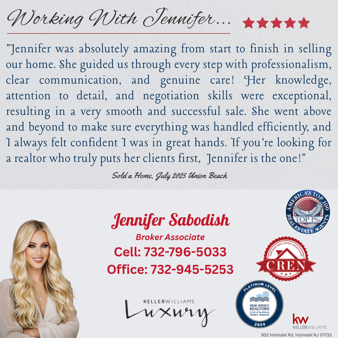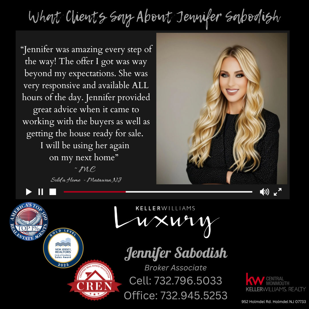 Jennifer was perfection! She handled both my sale and my purchase, which was on an extremely accelerated timeline once my buyers wanted to close in less than a month. I didnt think there was any way that timeframe could work, since I hadnt even found a place to potentially buy at that point, but she somehow got it all done! Shes a Matawan local with great knowledge of the area, and strong relationships with all the people necessary to make the process smoother. I had a lot of anxiety over the short timeframe, but Jennifer assured me everything would work out, and she was right! She was an invaluable help through every step of the process, and did an excellent job of calming all my fears. I highly recommend her for all your real estate needs!