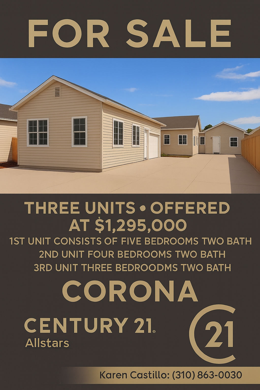 Let me introduce myself my name is Karen with over 15 years of combined professional experience as a CPA and Realtor KAREN CASTILLO Century 21 Allstars Cell: 310-863-0030