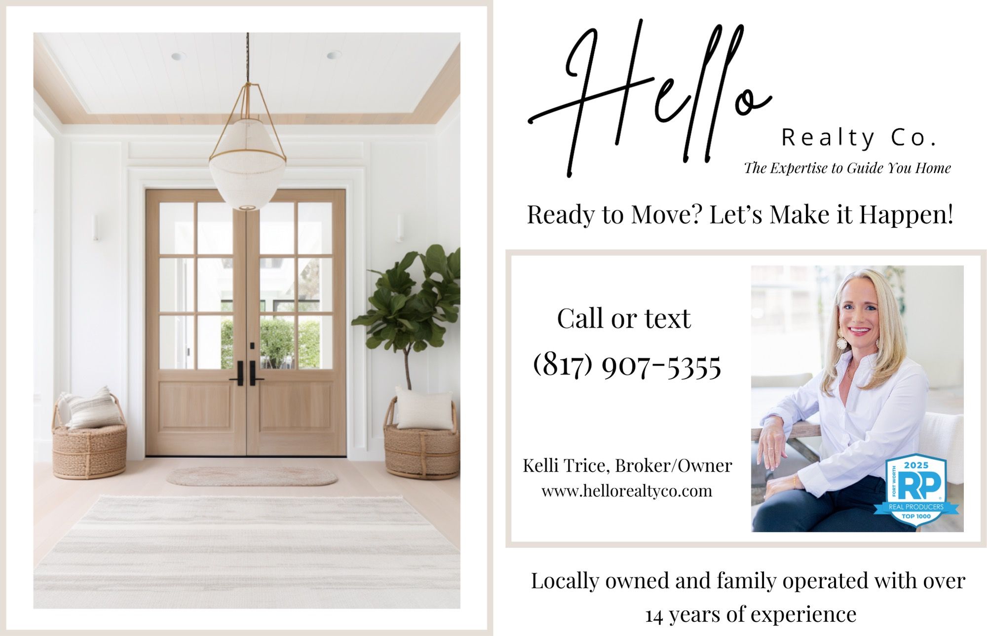 As first-time homebuyers, Kelli did a wonderful job guiding us through the process and answering any of our questions. She shared her knowledge and expertise with us while viewing properties and helped us narrow down what we were looking for in a house. Kelli is thoughtful and shared in our excitement when we finally closed on our first home! We highly recommend Hello Realty to anyone in the Fort Worth area!