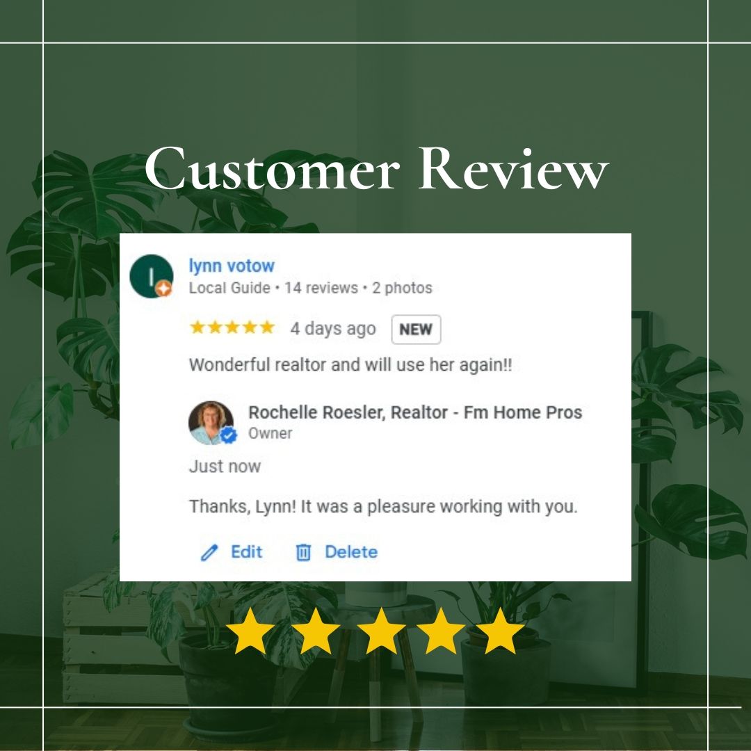 I chose Rochelle Roesler because of her ratings by others as it displays consistency. She's professional, precise and does what she says and more importantly she does what you ask of her to do. I put her to the test and we sold the property for $13k over list price in only 10 days. I'd hire her again to buy or sell. Thanks Rochelle