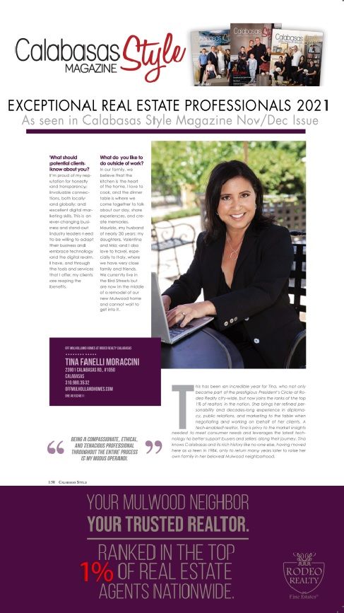 I have had the most wonderful experience working with Tina Fanelli Moraccini! Tina helped us purchase our dream lot in Camarillo. She is the ultimate professional, detail oriented, determined and dedicated, as well as just an all around good person and joy to work with. Tina consistently responded to my questions and requests promptly. She did research and pounded the pavement to find us just what we wanted. Her work ethic is extraordinary and she is such a pleasure to interact with. She made the entire process easy and smooth,. I cannot say enough positive things about this lovely woman. I highly recommend her to everyone and plan to work with her again to purchase a home for our daughter.